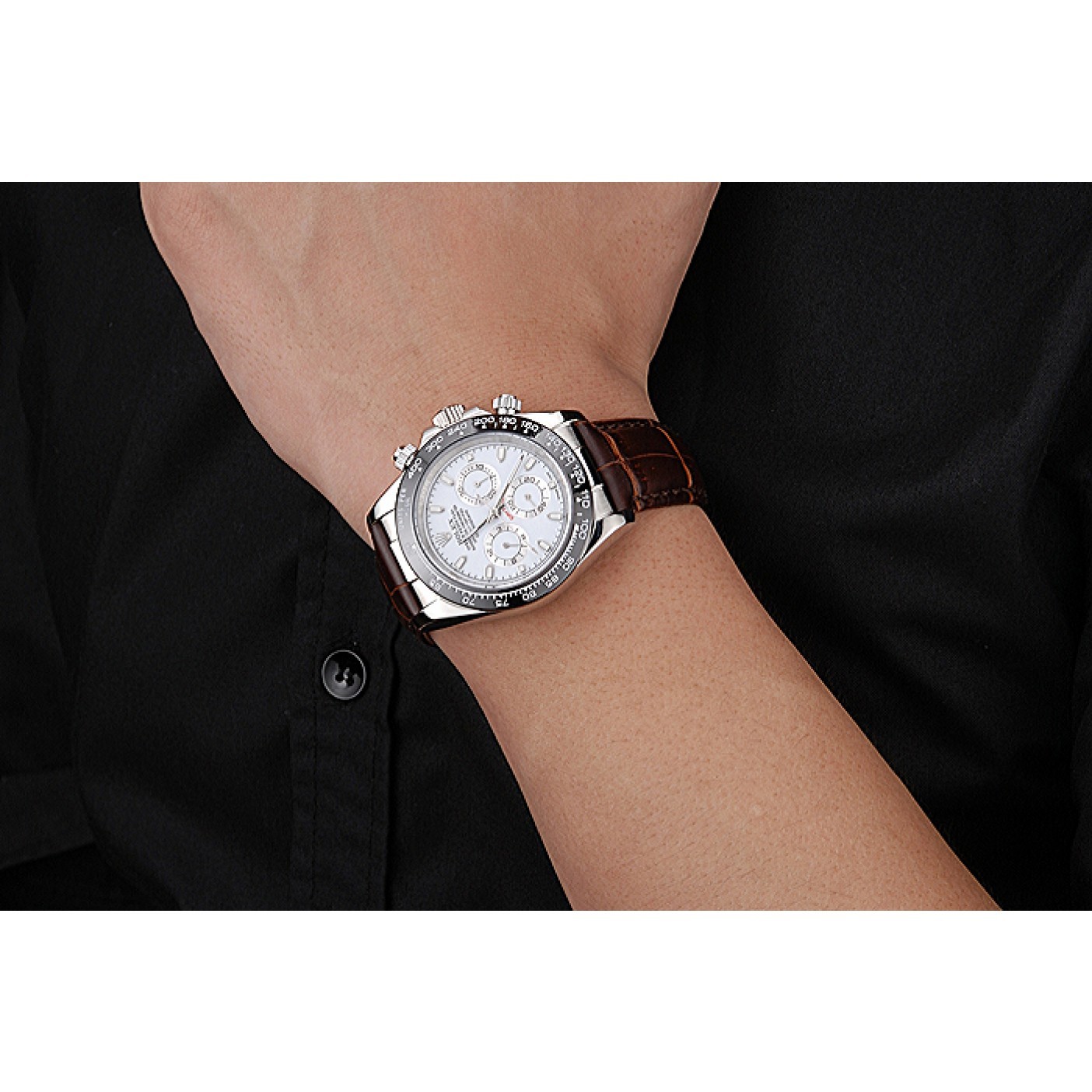 Rolex Cosmograph Daytona cassa in acciaio inossidabile quadrante bianco cinturino in pelle marrone 622.631