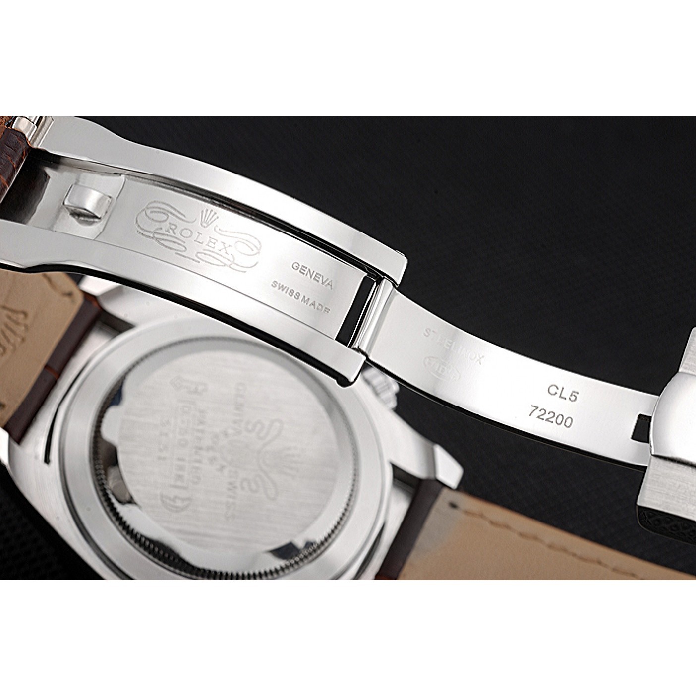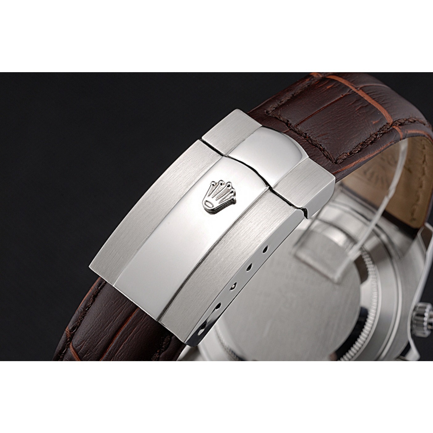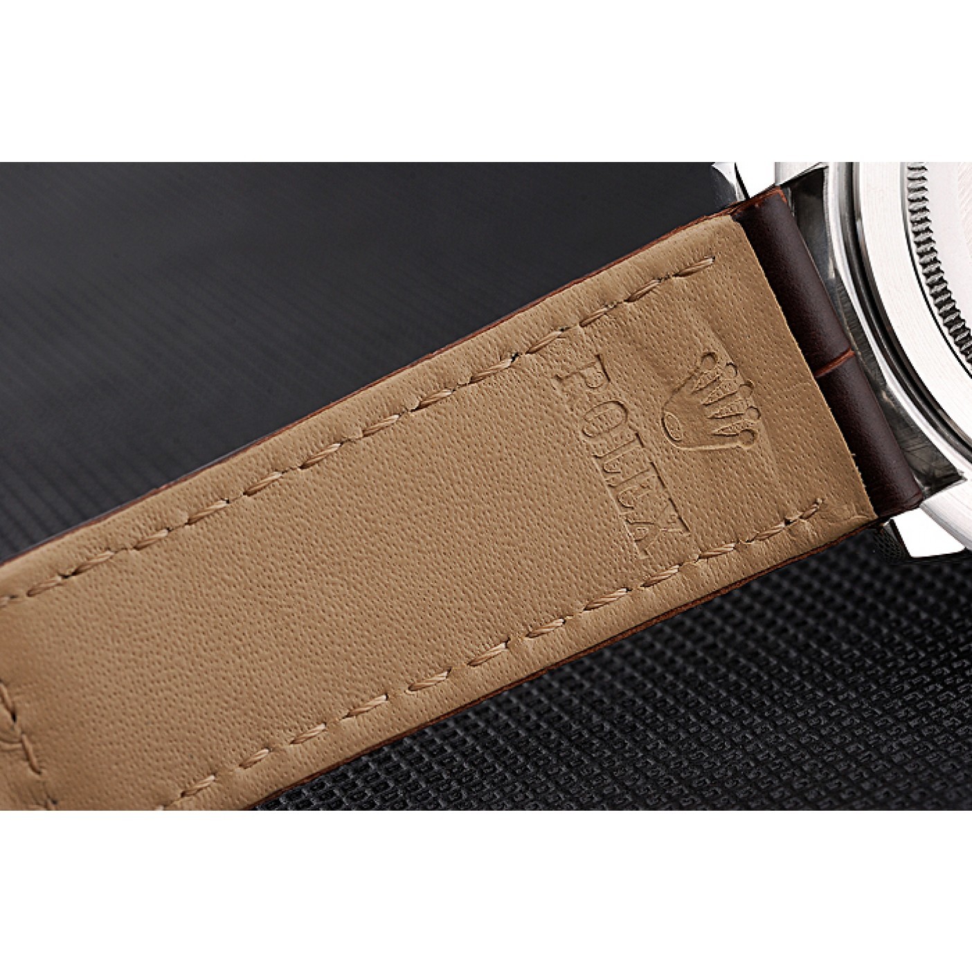 Bracciale Logo e cinturino in pelle di coccodrillo marrone stampato a caldo Rolex con logo fibbia deployante in acciaio inossidabile spazzolato intagliato