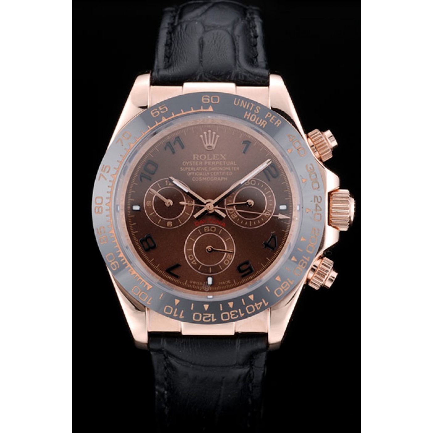 Rolex Daytona lunetta in ceramica nera quadrante marrone cinturino in pelle nera 41975
