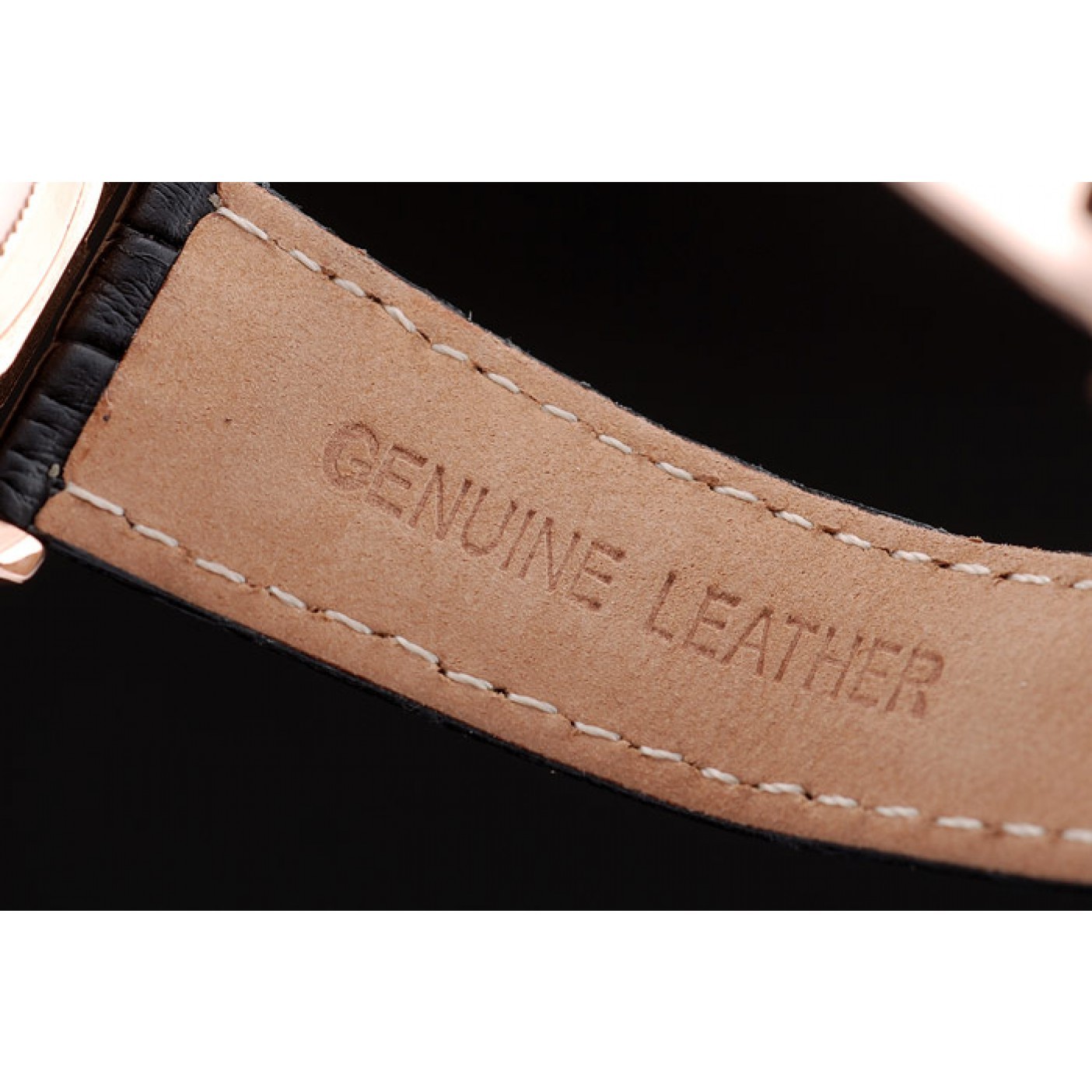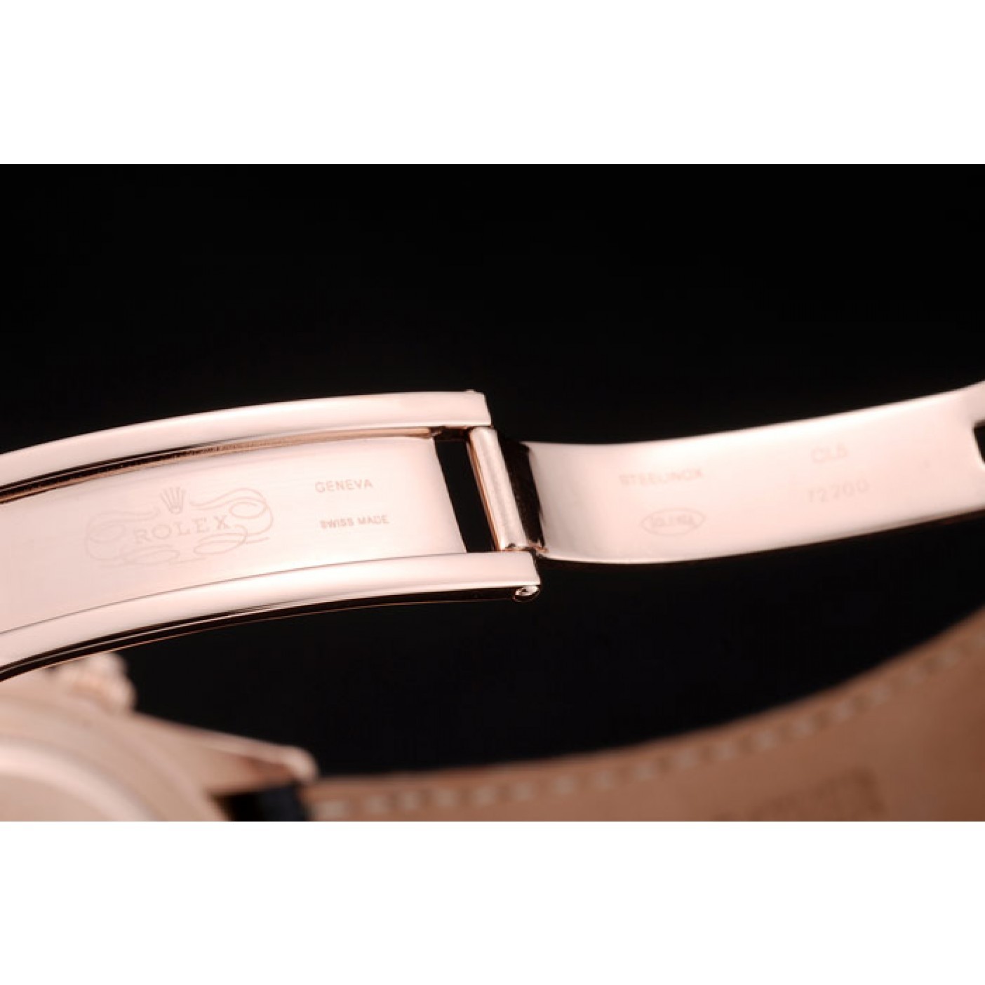Bracciale Logo e cinturino in pelle di coccodrillo nero con logo Rolex goffrato a caldo e fibbia deployante con logo placcato oro rosa 18k inciso