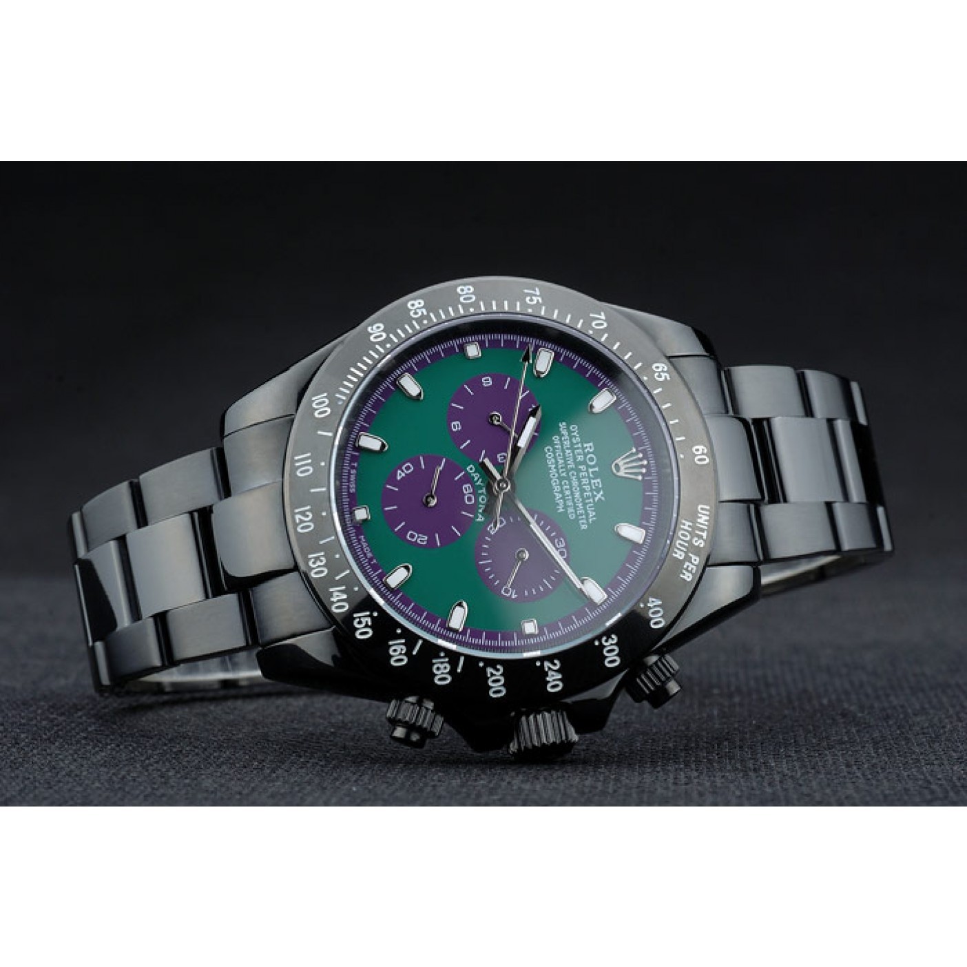 Rolex Daytona Black Ion Placcato Tachimetro Cinturino in acciaio inossidabile nero Quadrante verde 80246