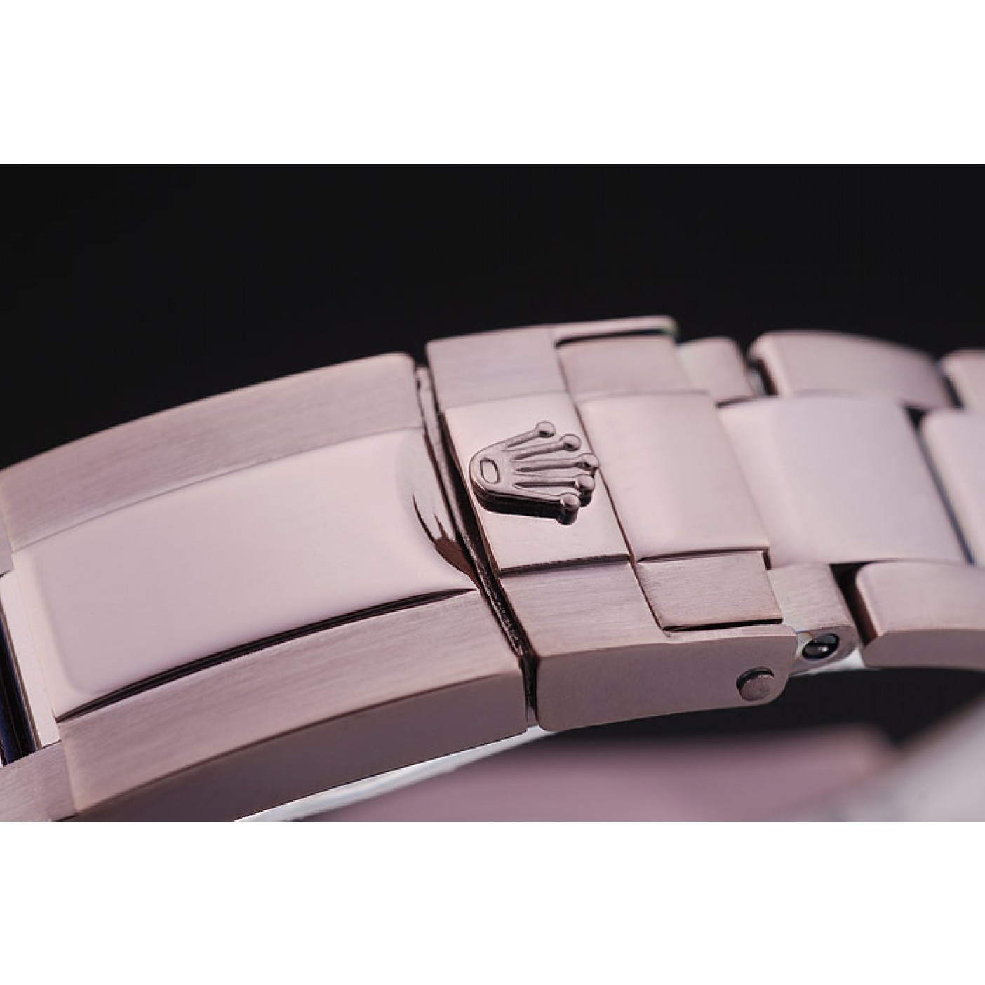 Bracciale Bracciale a maglie in acciaio inossidabile spazzolato verniciato a polvere marrone rosato con logo Rolex applicato chiusura