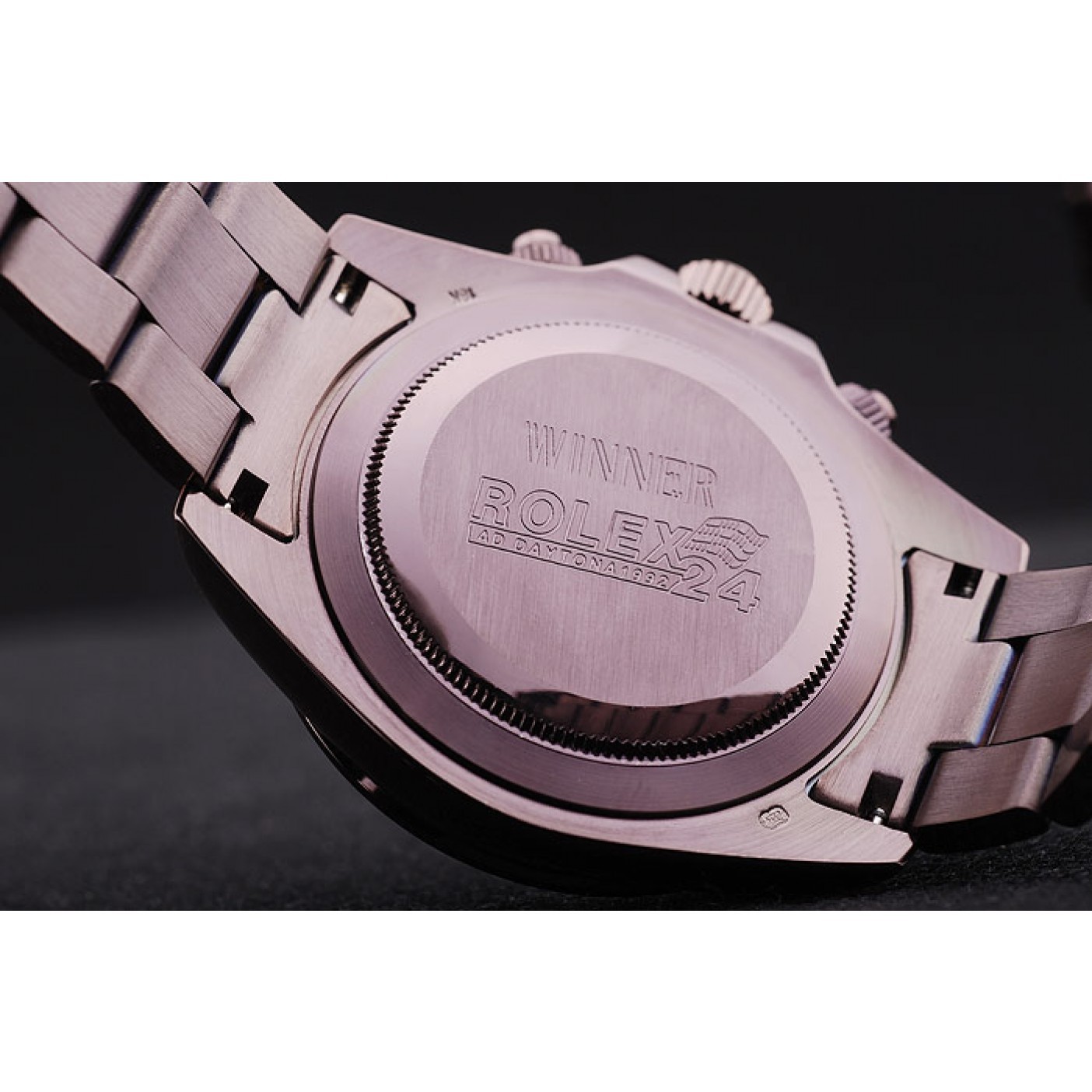 Indietro Fondo a scatto in acciaio inossidabile spazzolato verniciato a polvere marrone rosato con Iscrizione Rolex