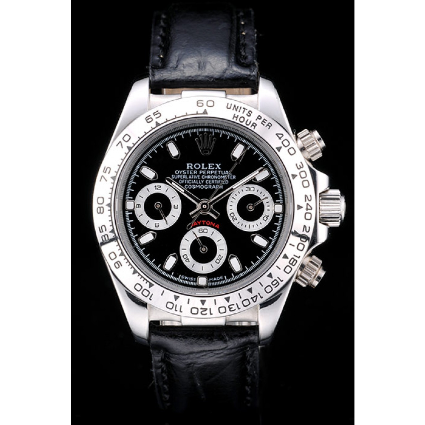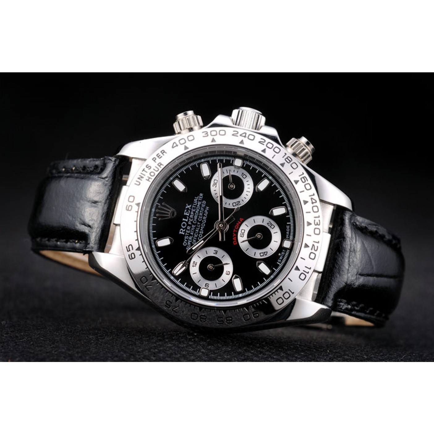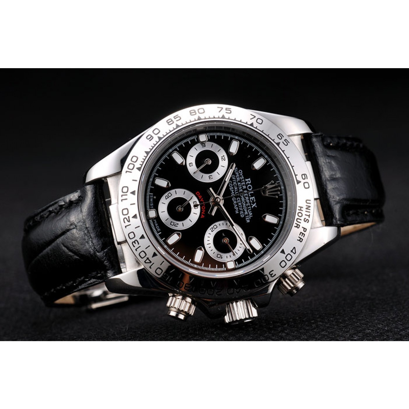 Rolex Daytona Lady Cassa in Acciaio Inossidabile Quadrante Nero Cinturino in Pelle Nero - Tachimetro