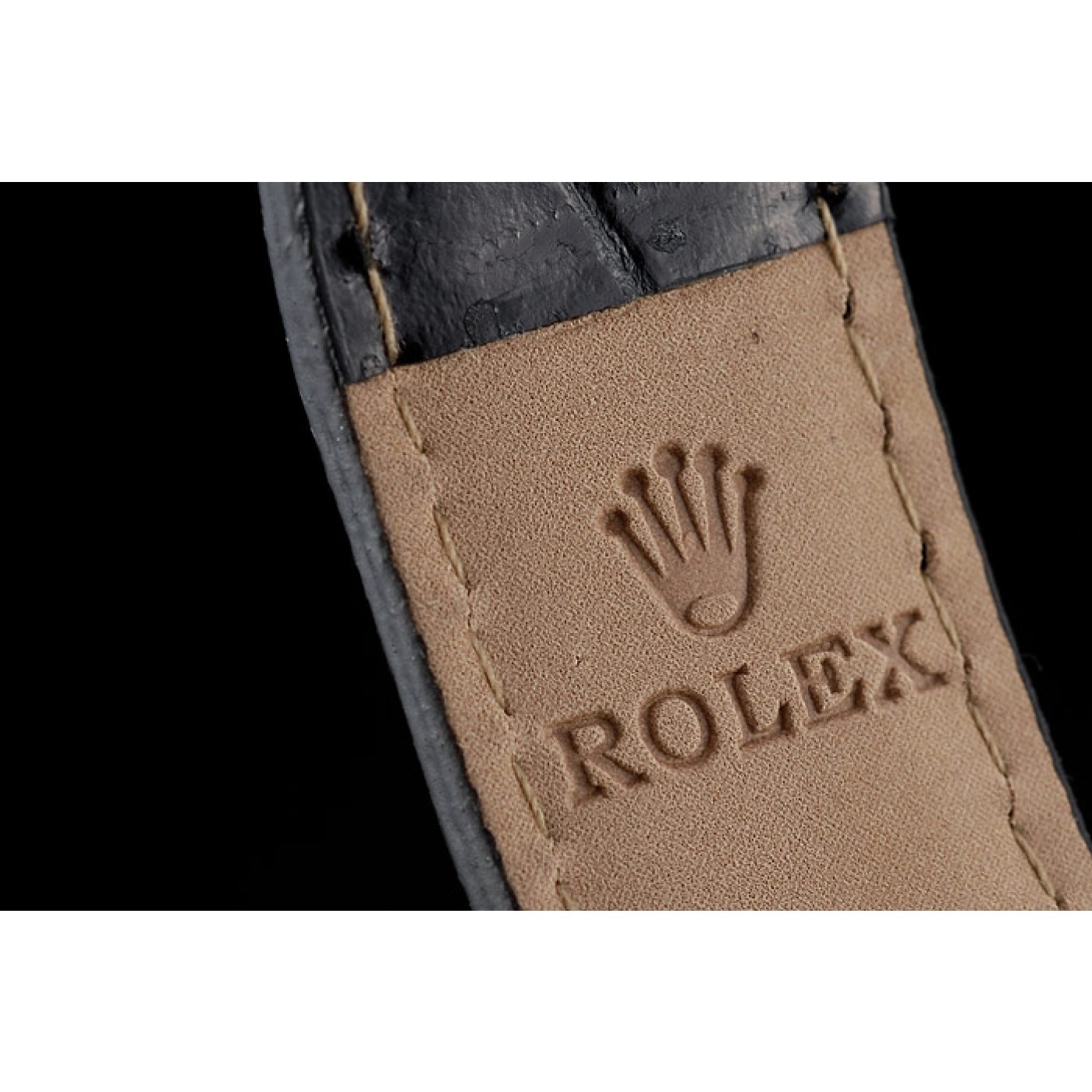 Bracciale Cinturino in pelle di coccodrillo nero stampato a caldo Rolex con fibbia deployante in acciaio inossidabile incisa con logo Rolex sulla parte superiore
