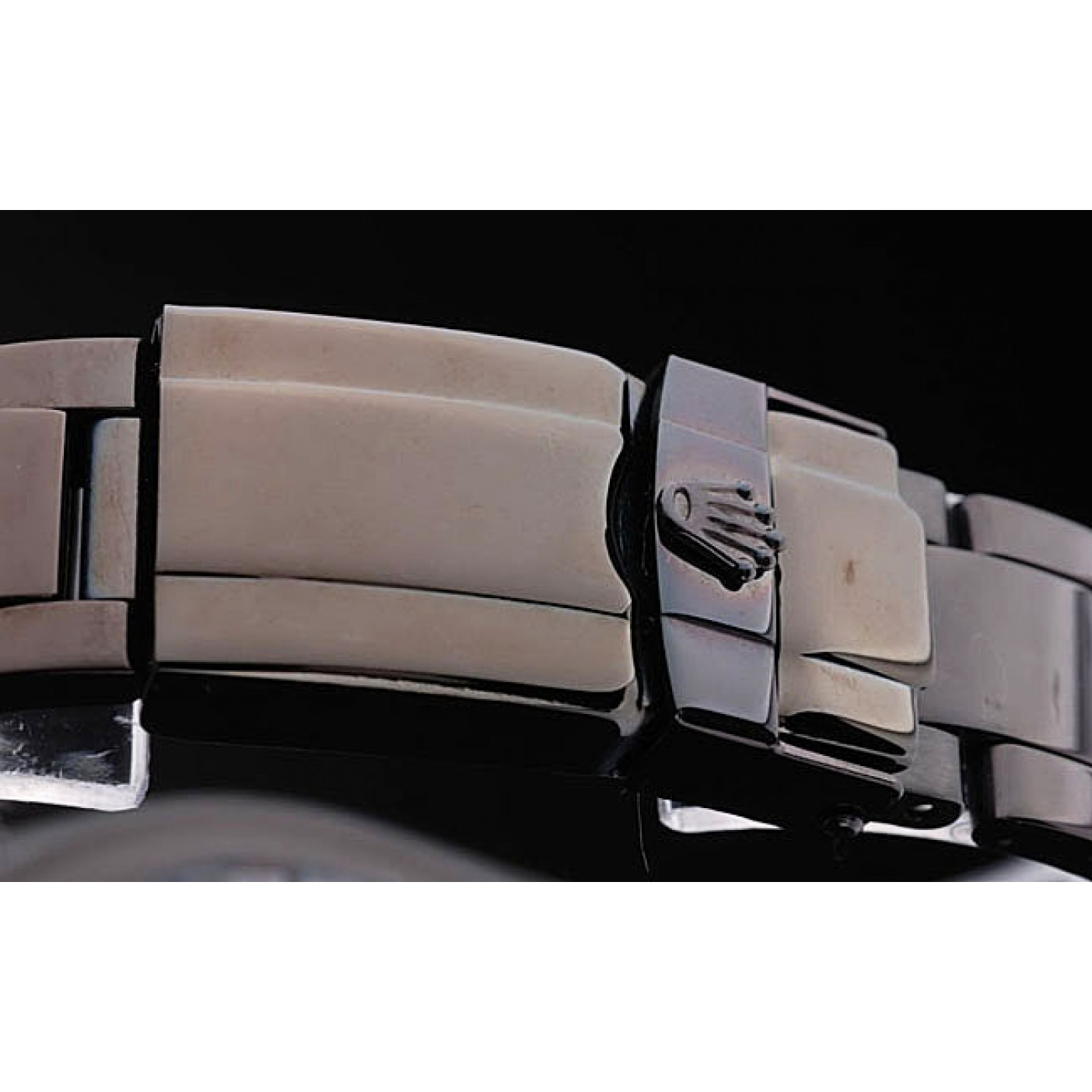 Bracciale Bracciale a maglie in acciaio inossidabile smaltato nero con fibbia deployante con incisione Rolex che mostra il logo Rolex