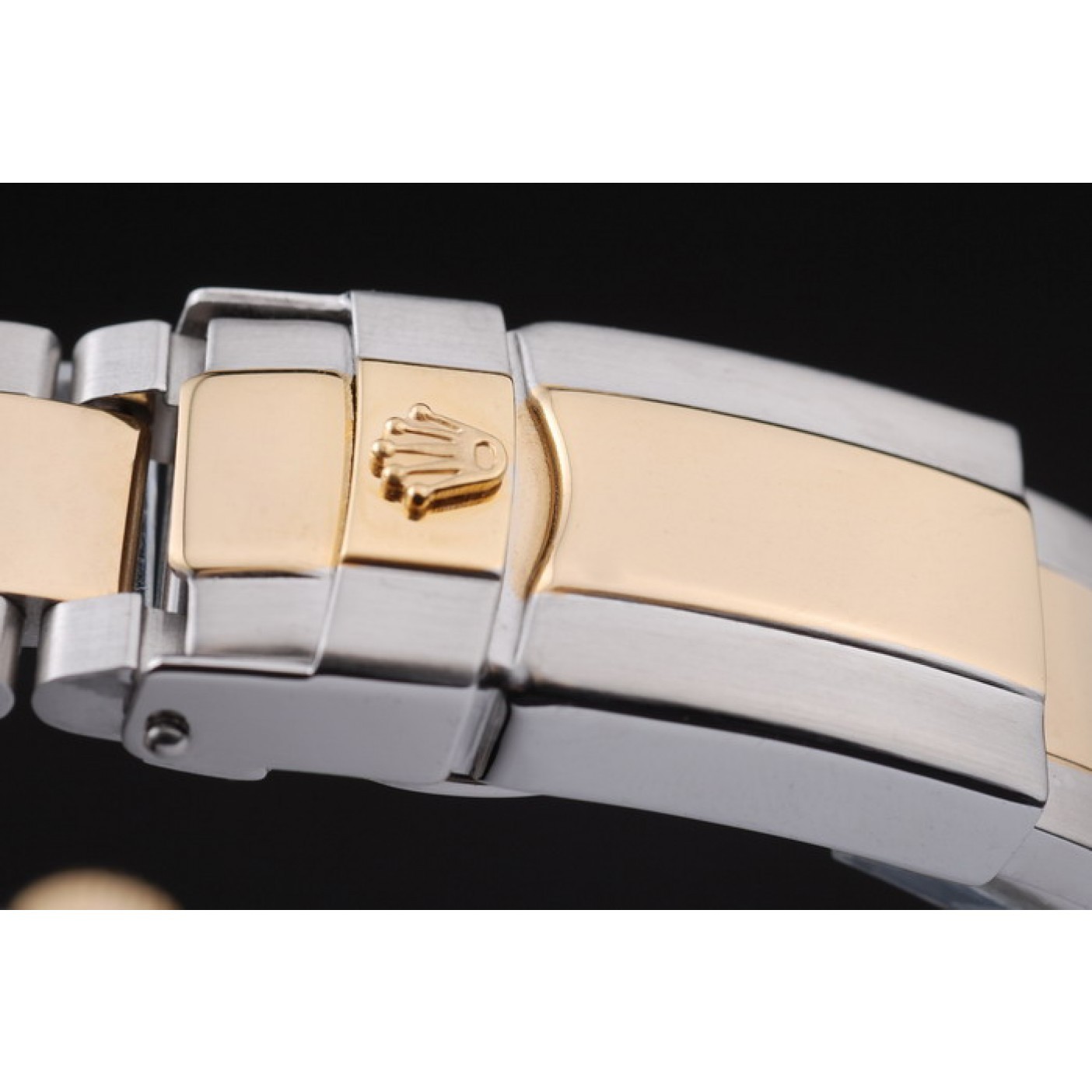 Bracciale Bracciale a maglie in acciaio inossidabile spazzolato e dorato bicolore con fibbia deployante con incisione Rolex che mostra il logo Rolex