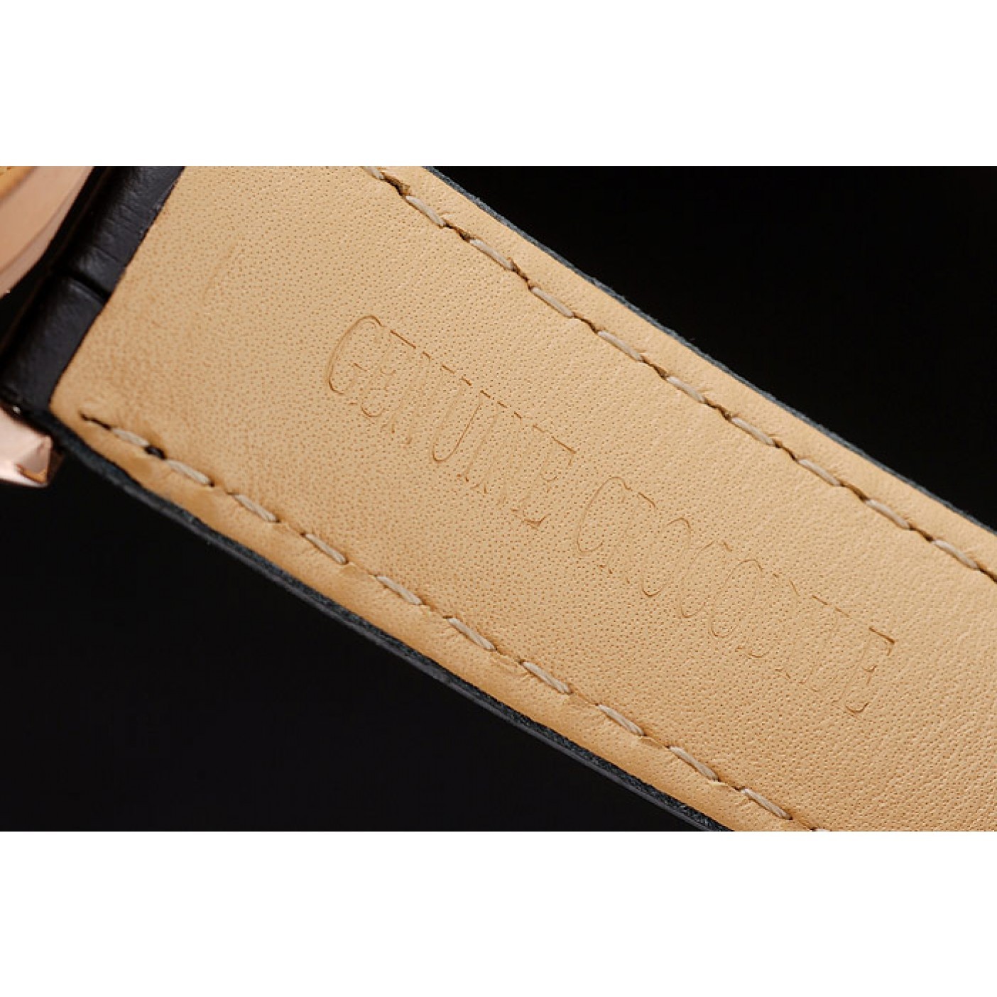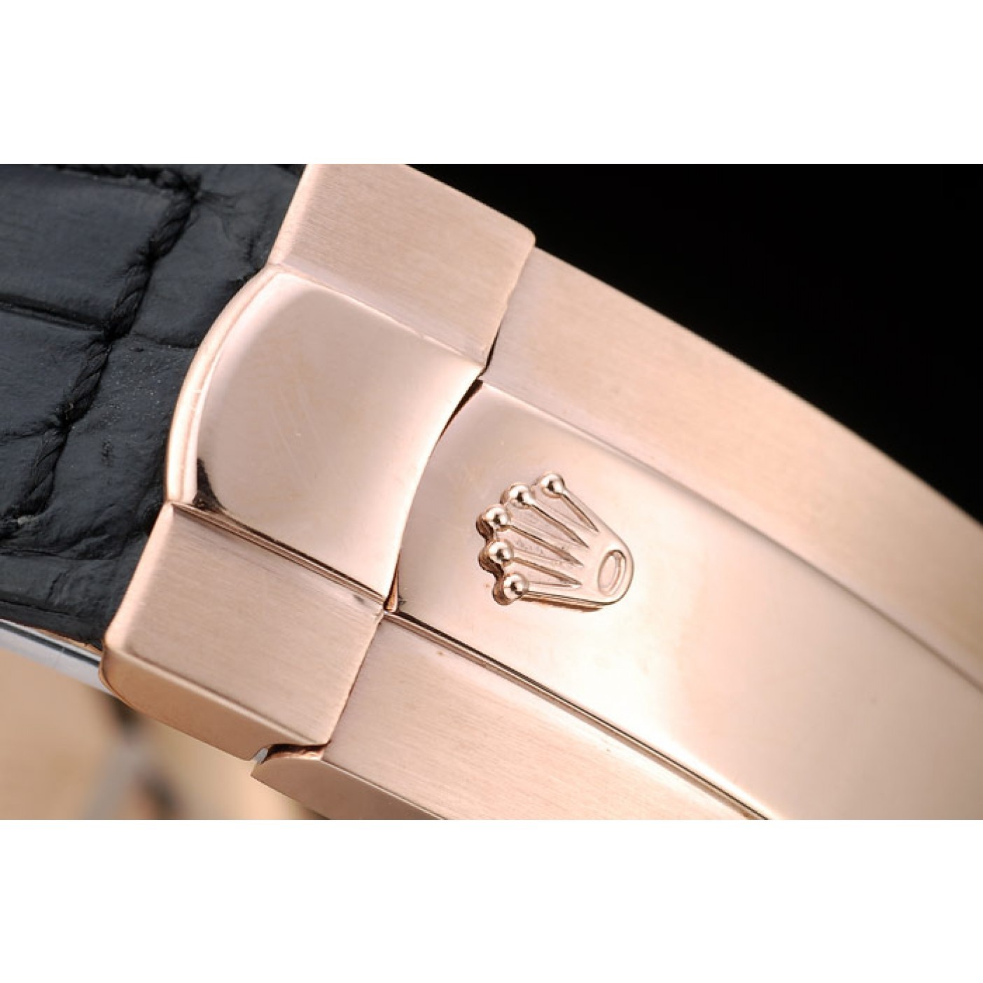 Bracciale Cinturino in pelle di coccodrillo nero stampato a caldo Rolex con fibbia deployante in oro rosa incisa con logo Rolex sulla parte superiore
