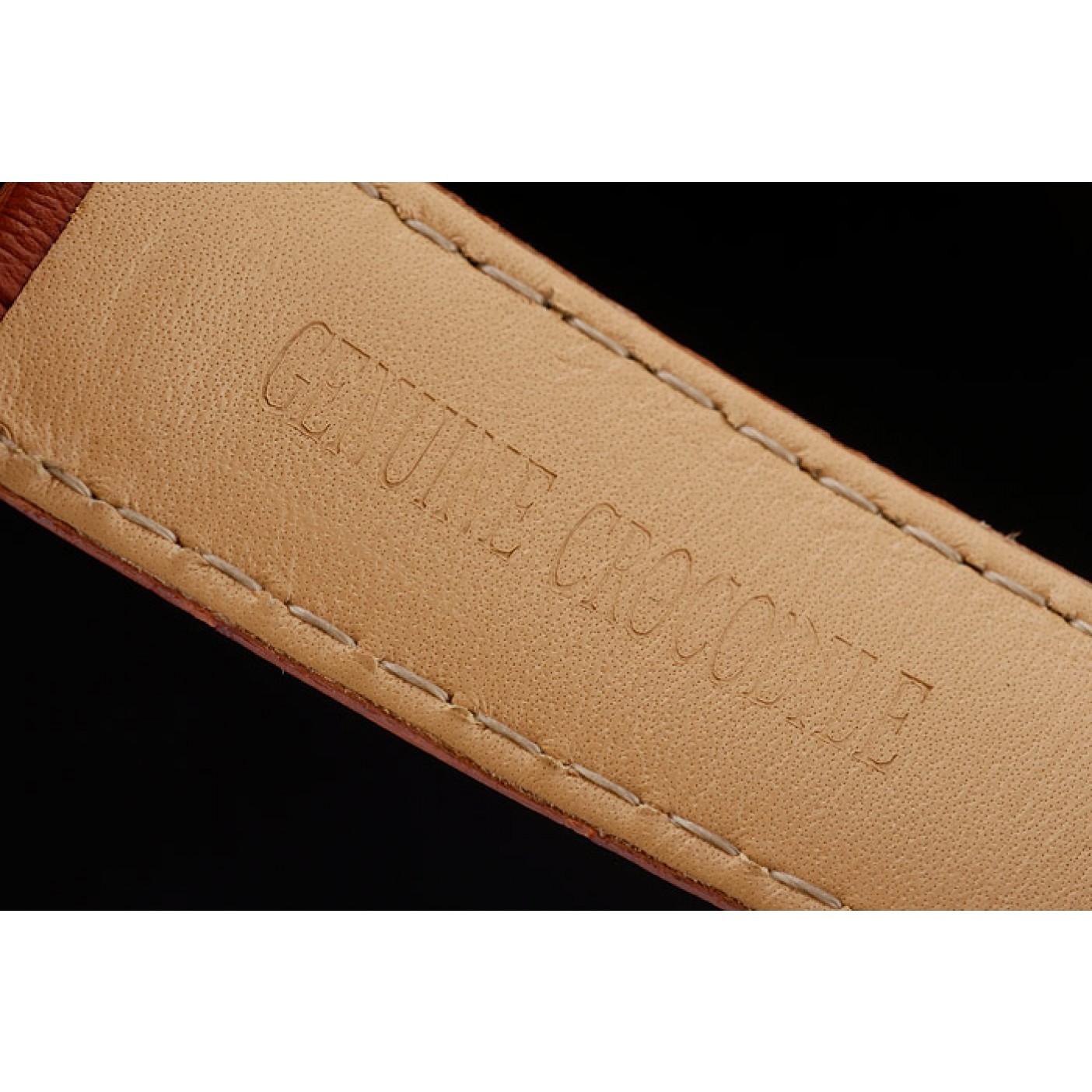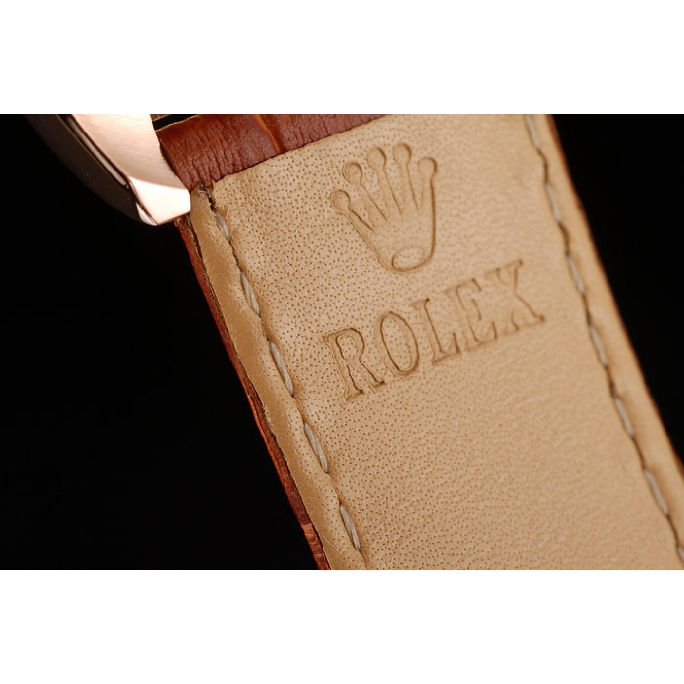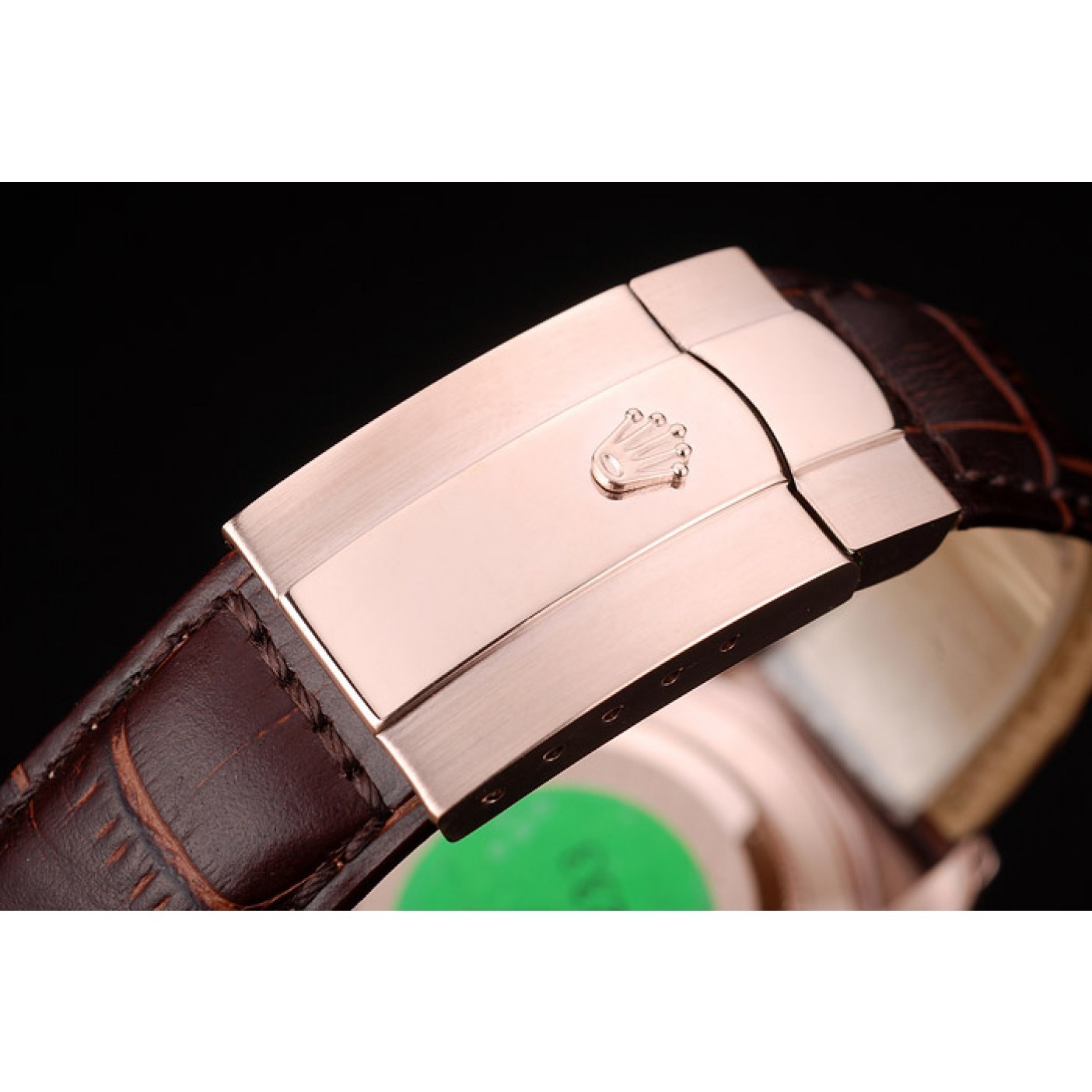 Bracciale Cinturino in pelle di coccodrillo marrone stampato a caldo Rolex con fibbia deployante in oro rosa incisa con logo Rolex sulla parte superiore