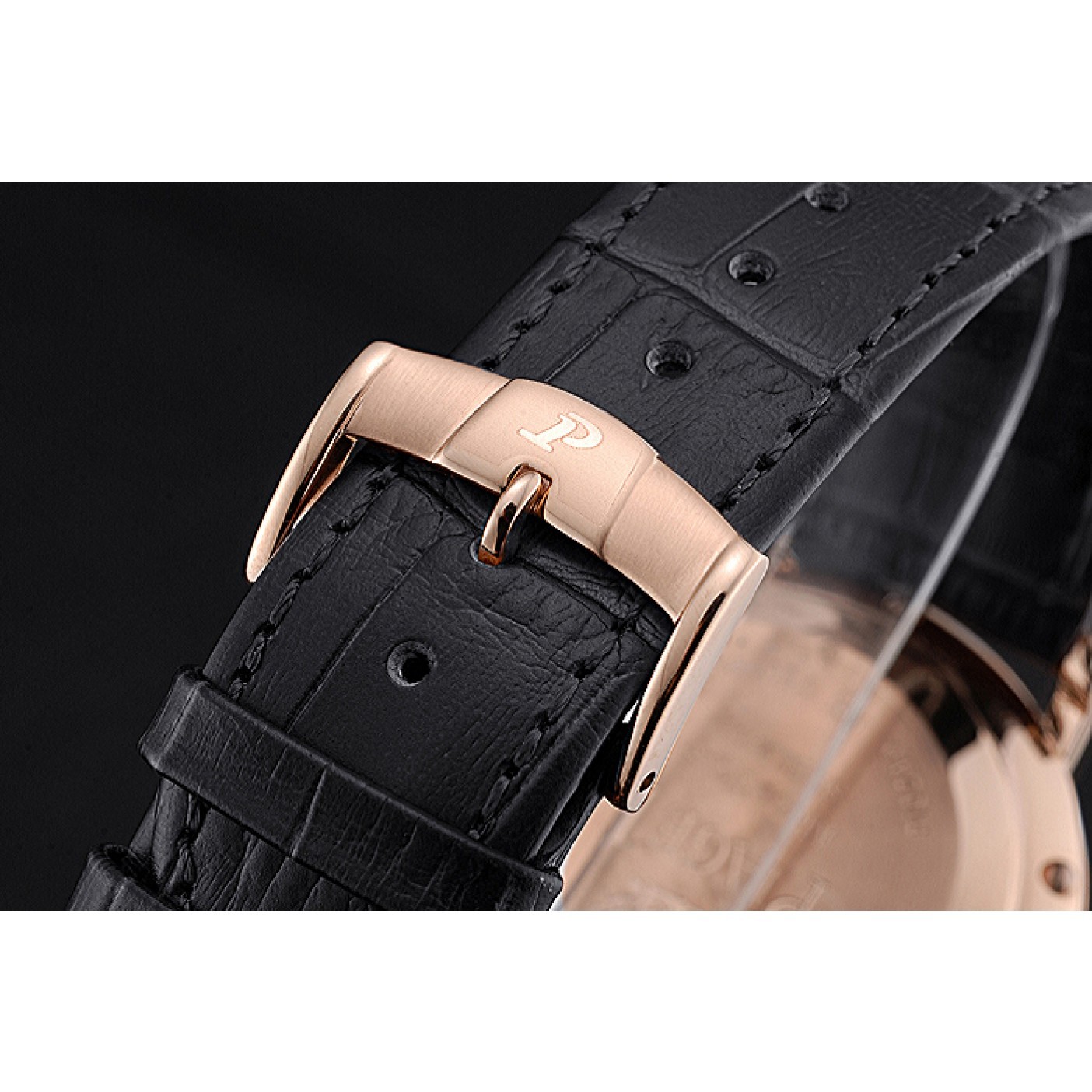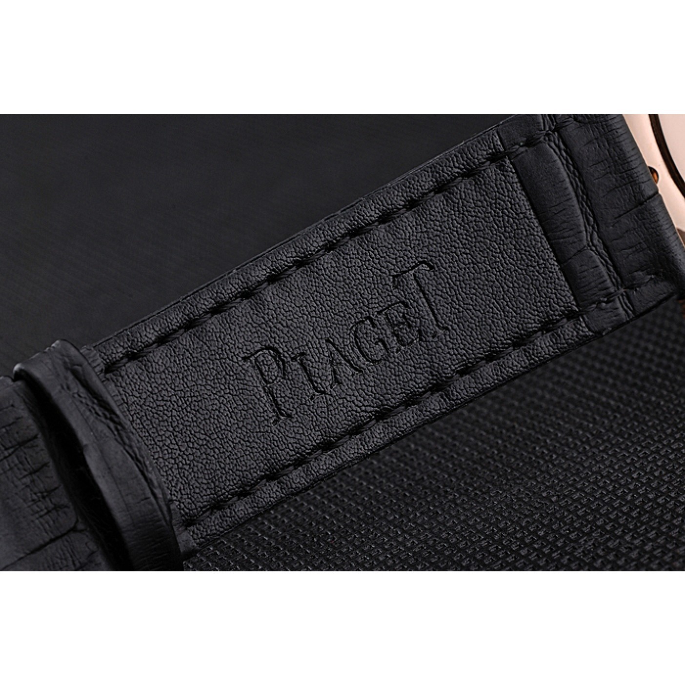 Bracciale Cinturino in pelle di coccodrillo nero goffrato Piaget con logo Piaget inciso fibbia a gancio placcato oro rosa 18k